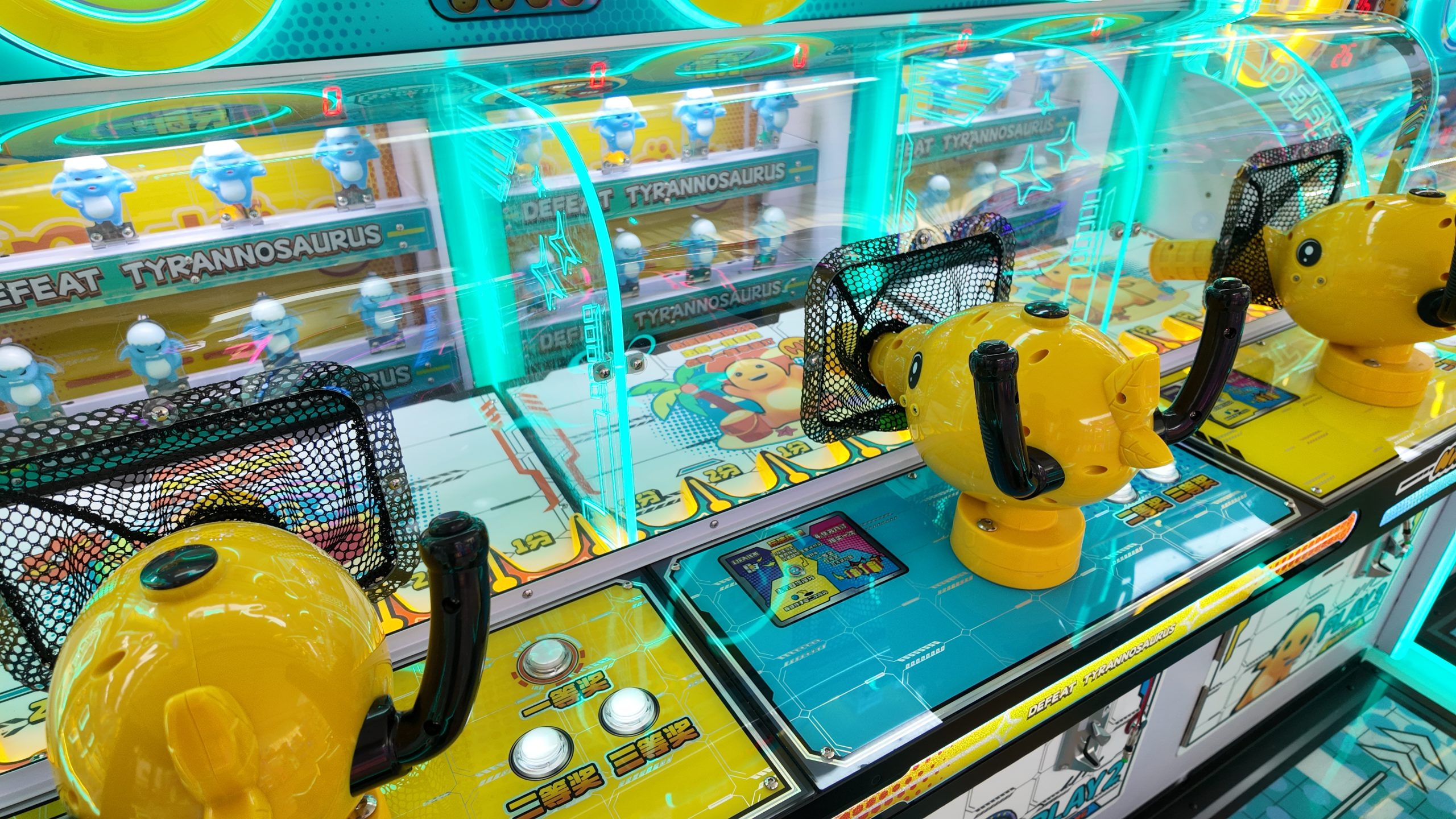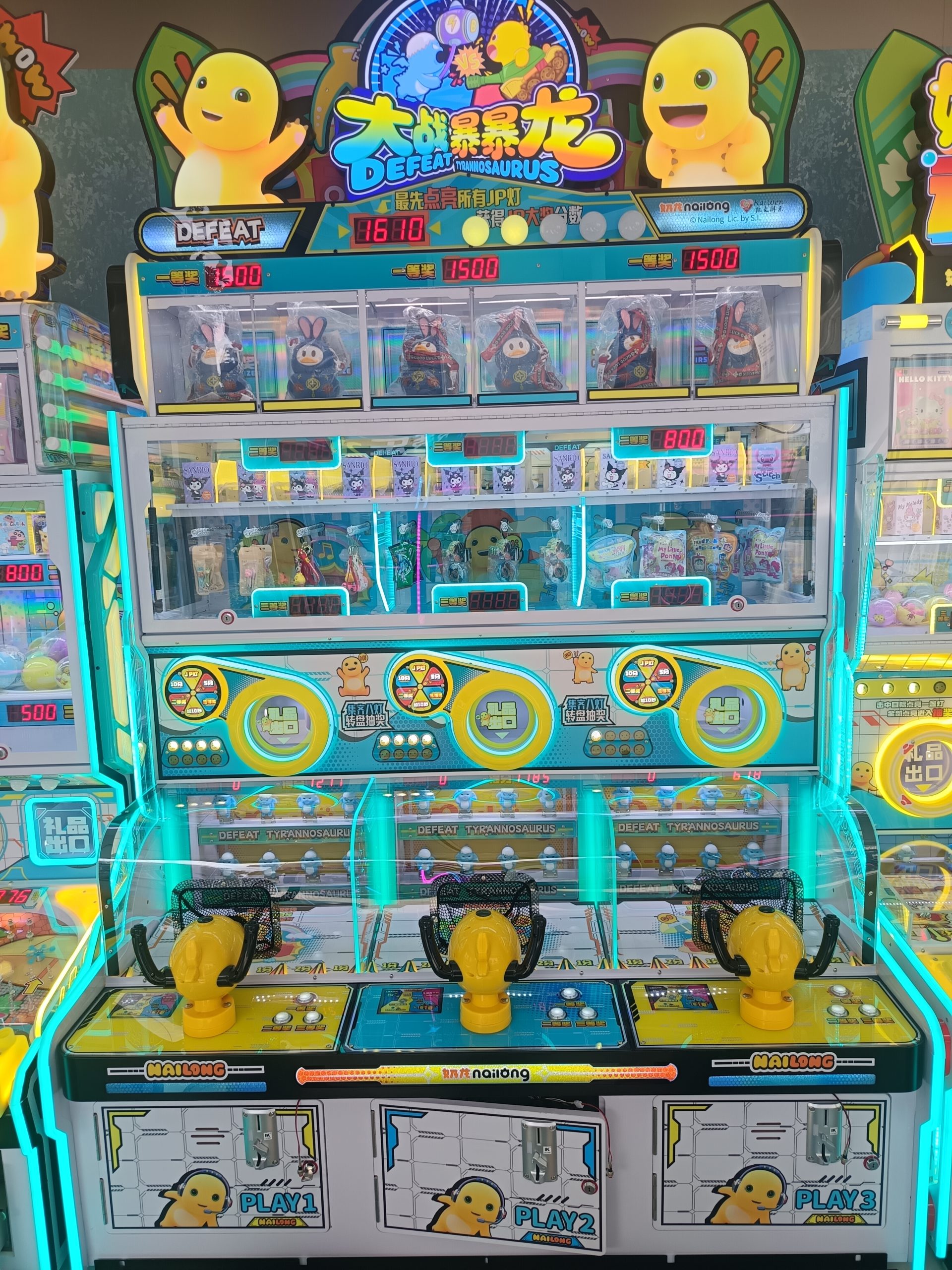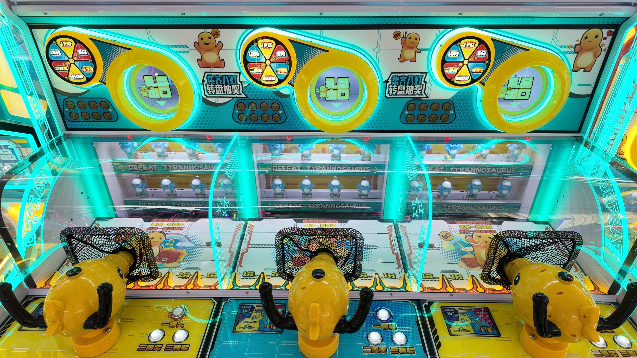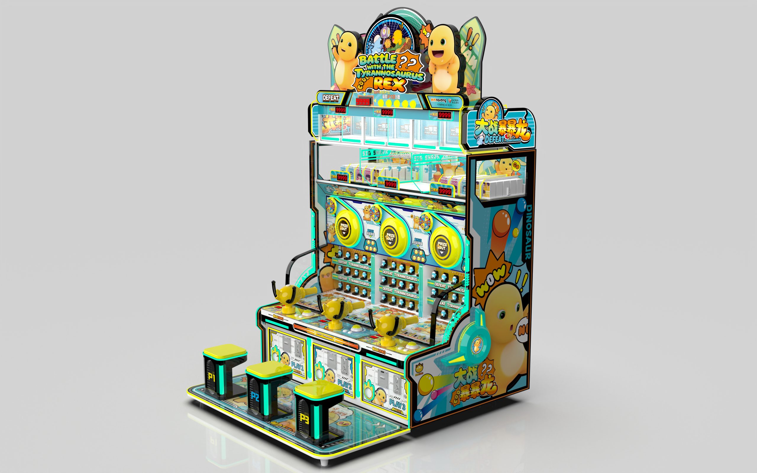 3-person gift machine. Press the buttons to launch the balls, and earn corresponding points which can be used to exchange for gifts.