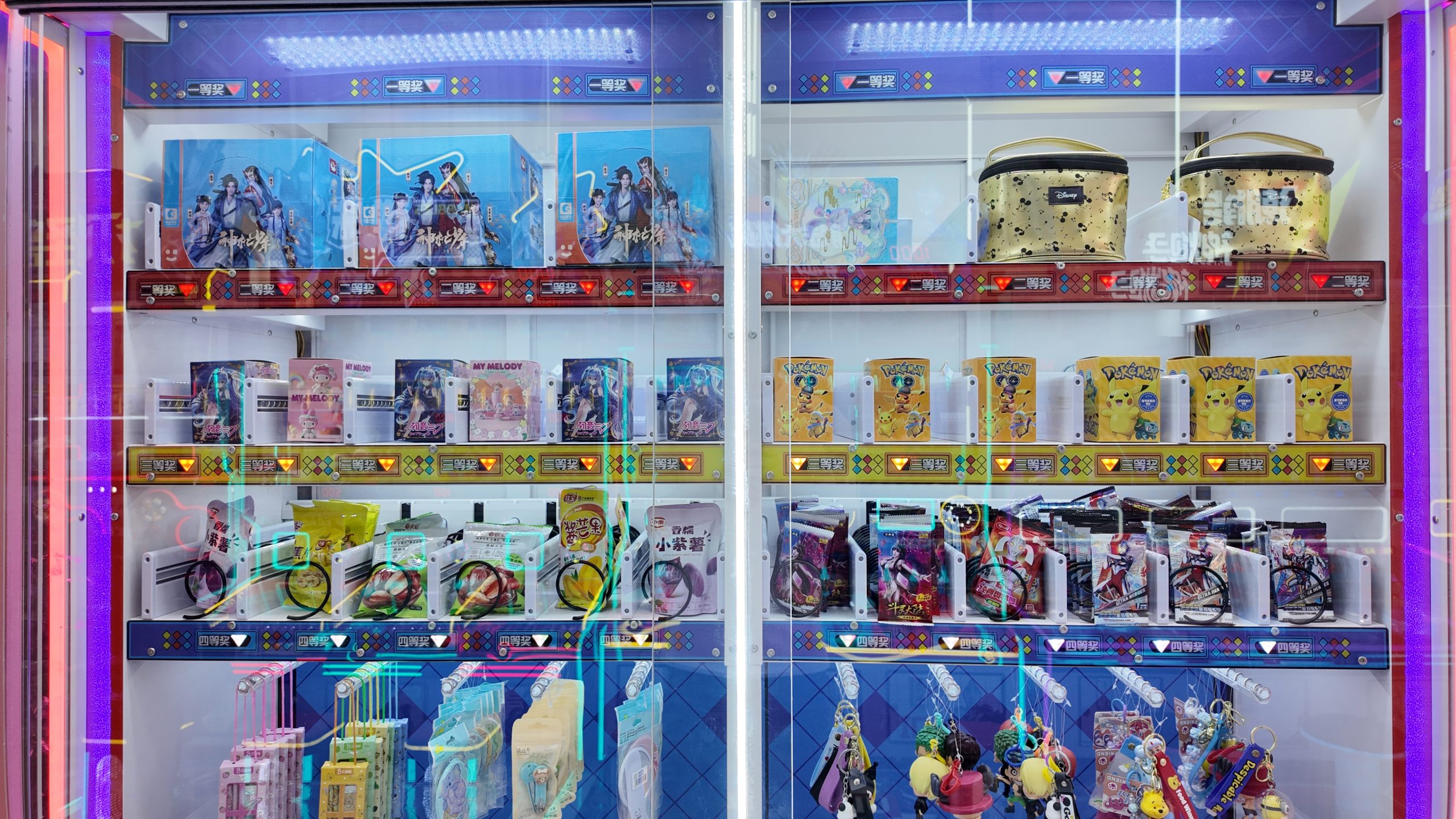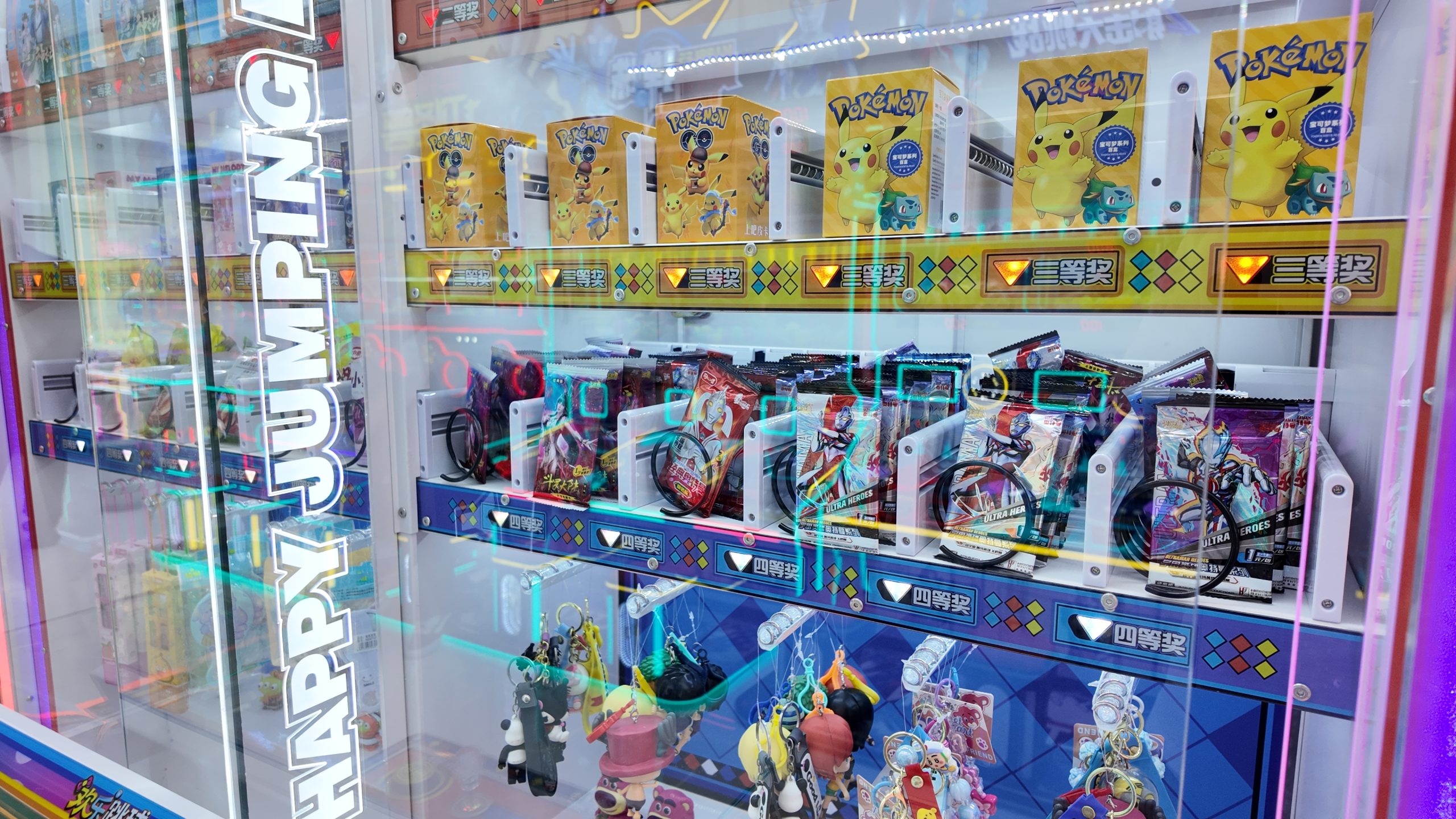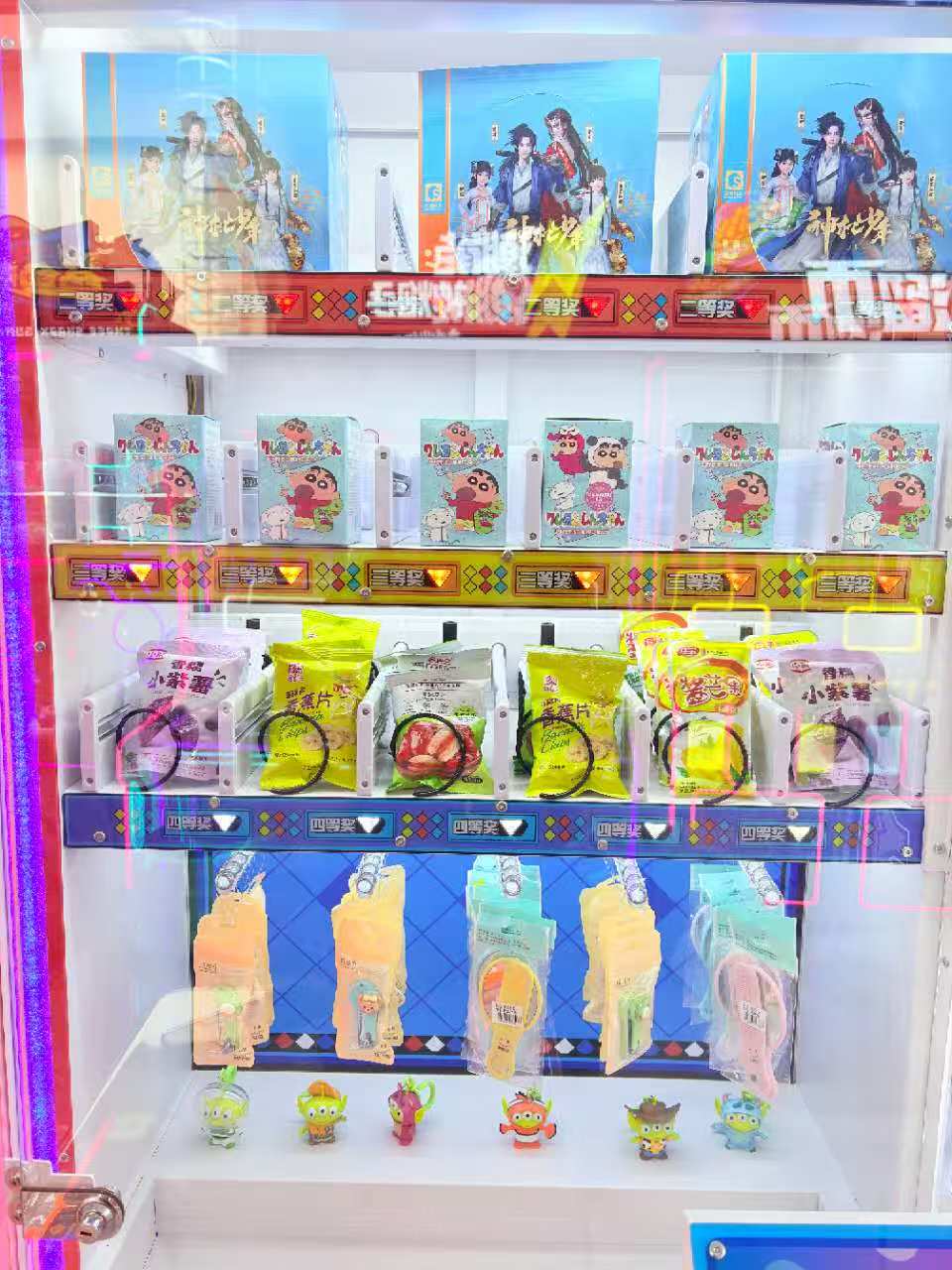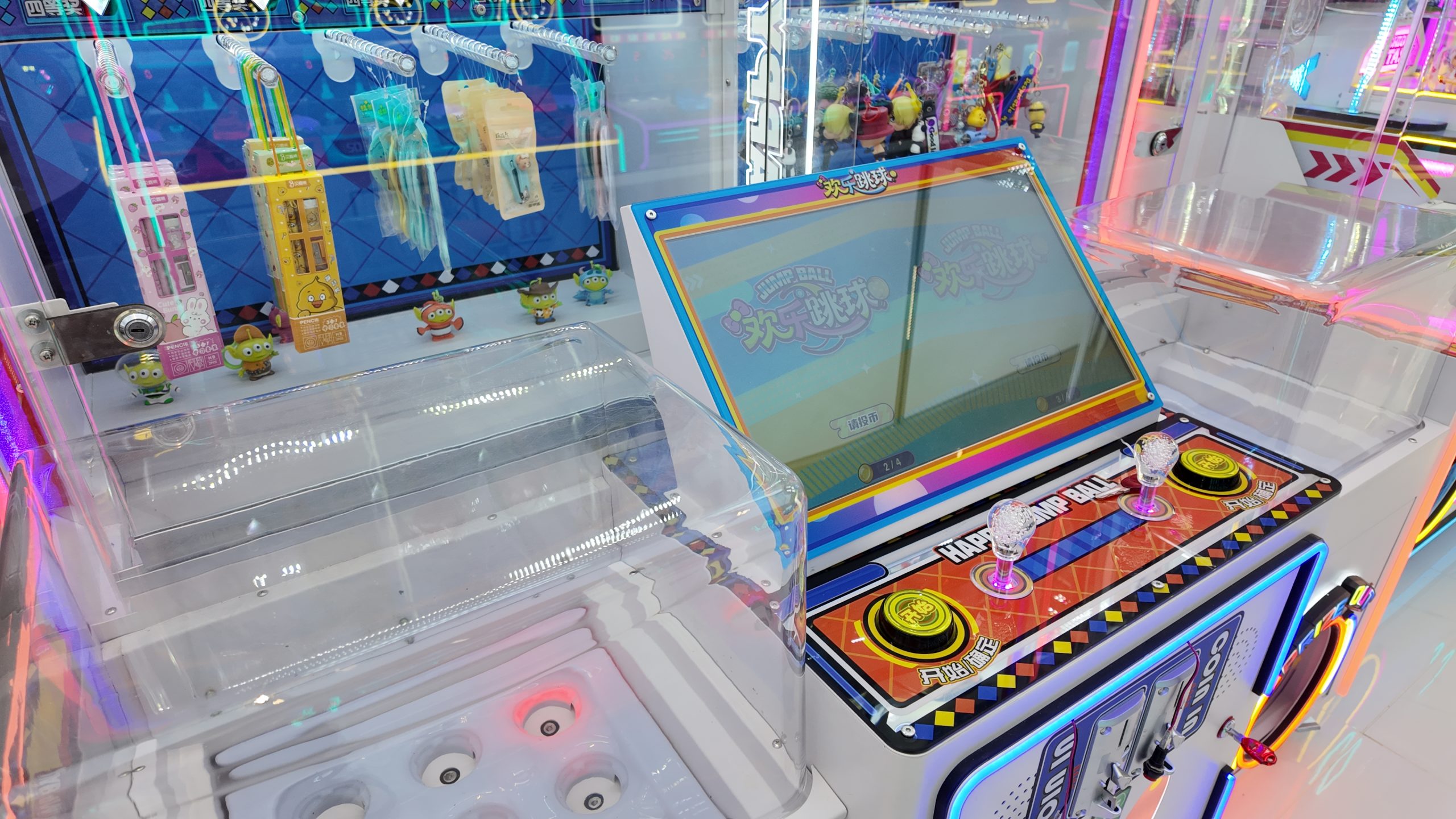3-player gift machine. Players throw small balls into the moving baskets, earning corresponding points which can be used to exchange for gifts.