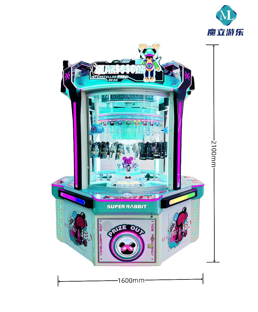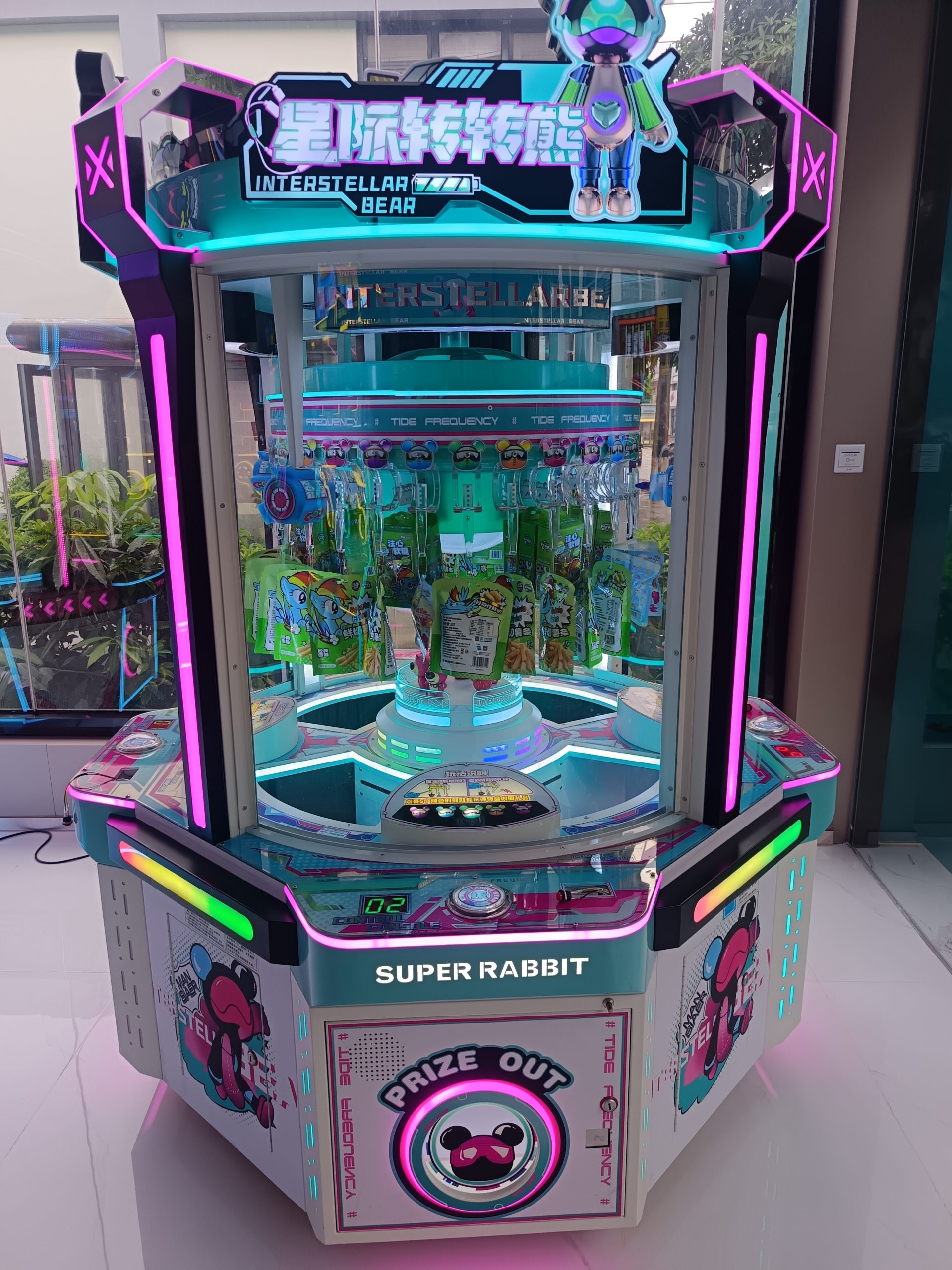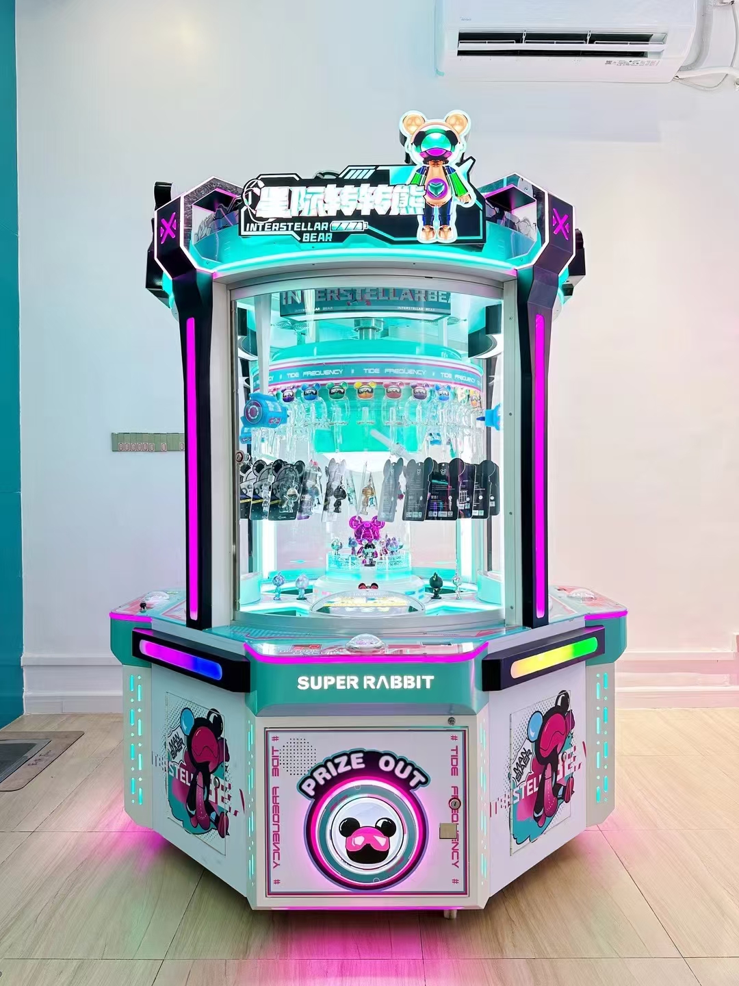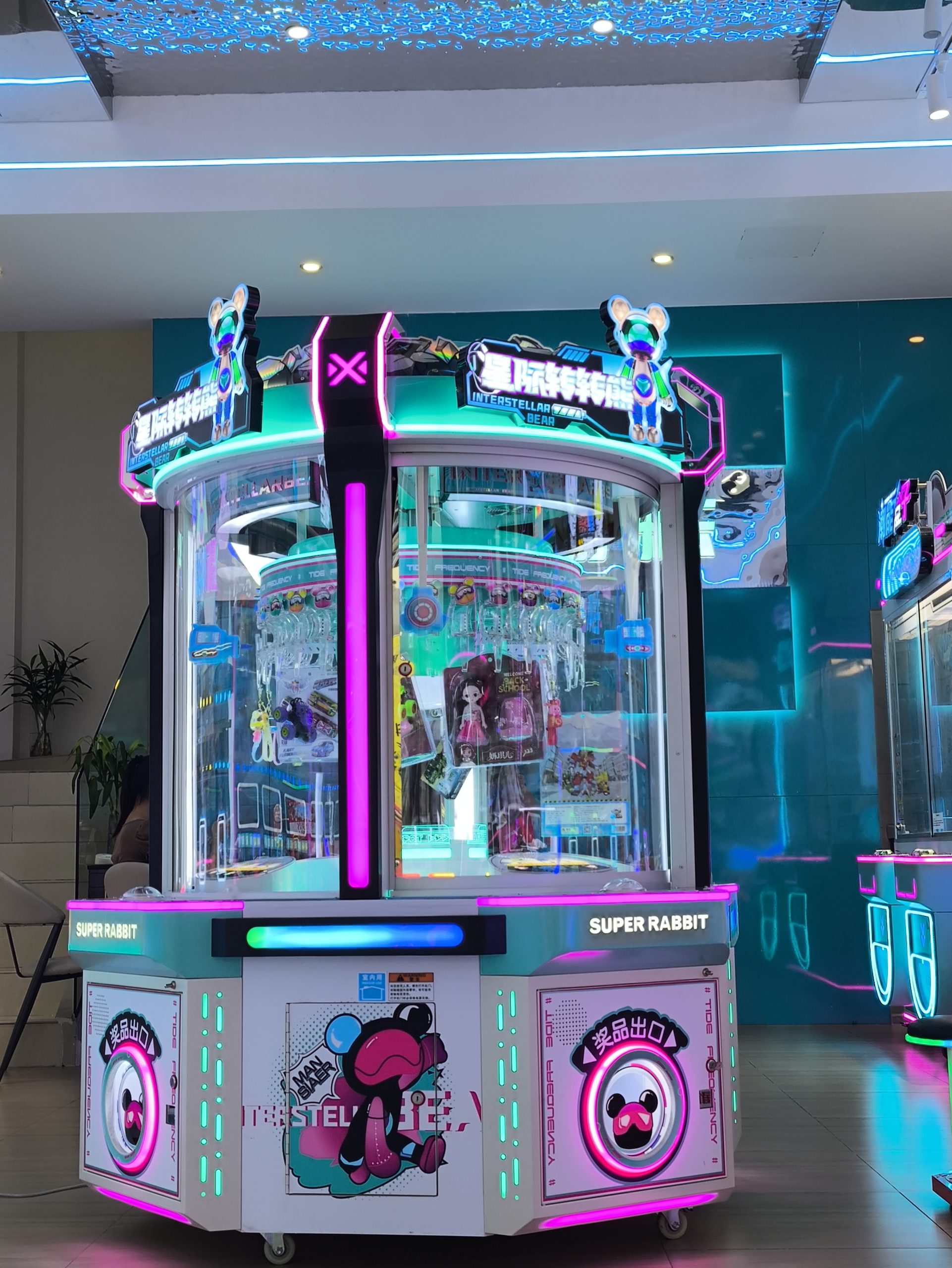 This four-player gift machine allows players to press the start button. If they hook the peripheral hooks, they can get a small gift. When they collect five cartoon lamps, they can get a blind box in the inner circle, which may contain snacks, keychains, toys and other rewards. It has strong interactivity and a fast payback period.