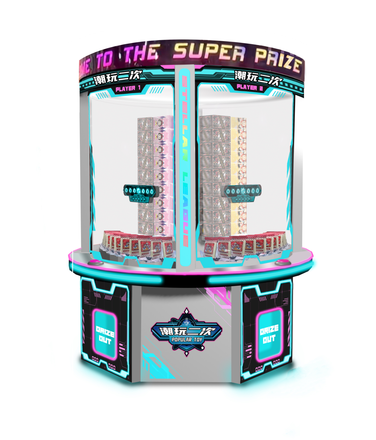 A four-player gift machine. When players press the start button, they can draw an outer hook and receive a small gift. If they collect 5 cartoon lights, they will receive an inner JP blind box grand prize, which may include rewards such as snacks and toys. It has strong interactivity and a fast return-on-investment cycle.