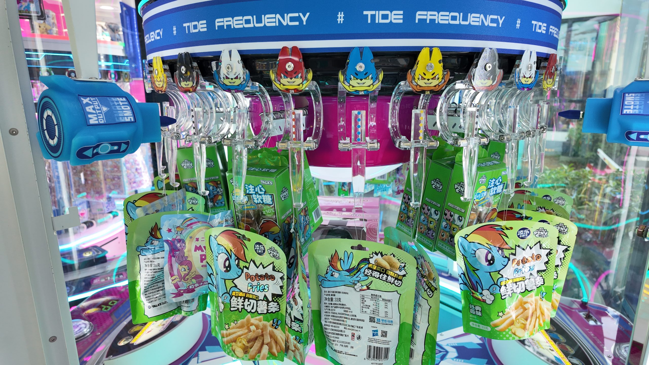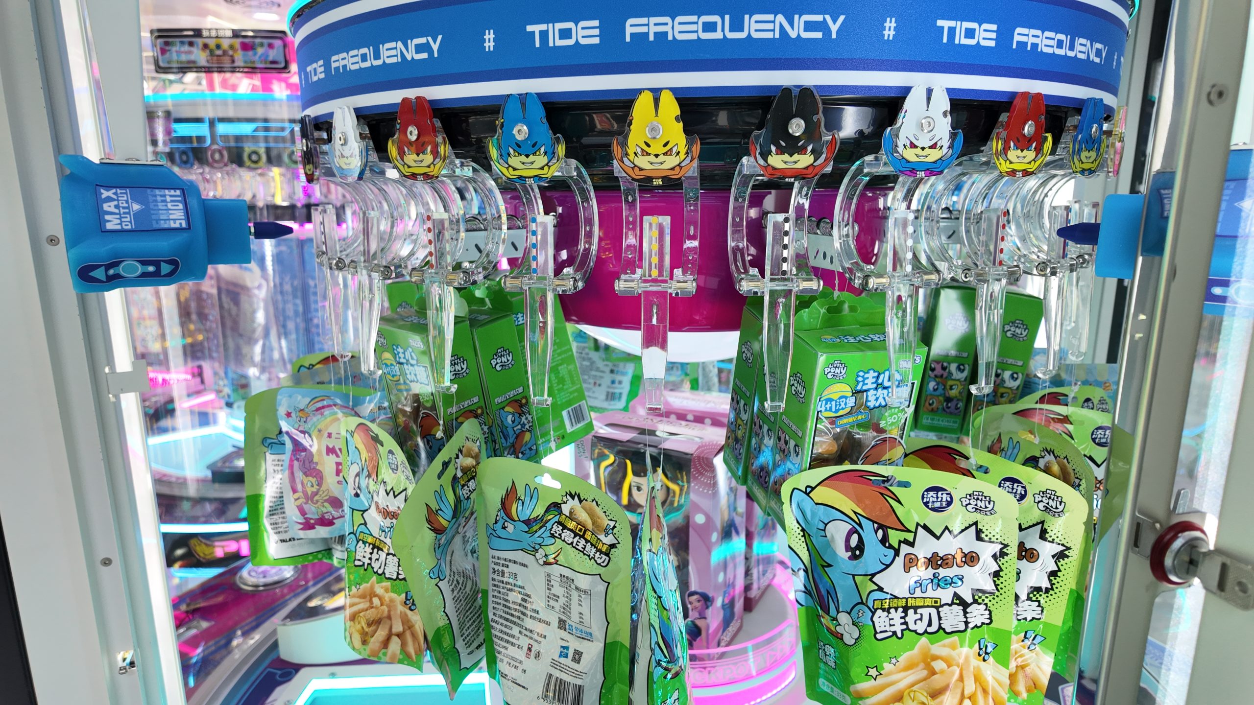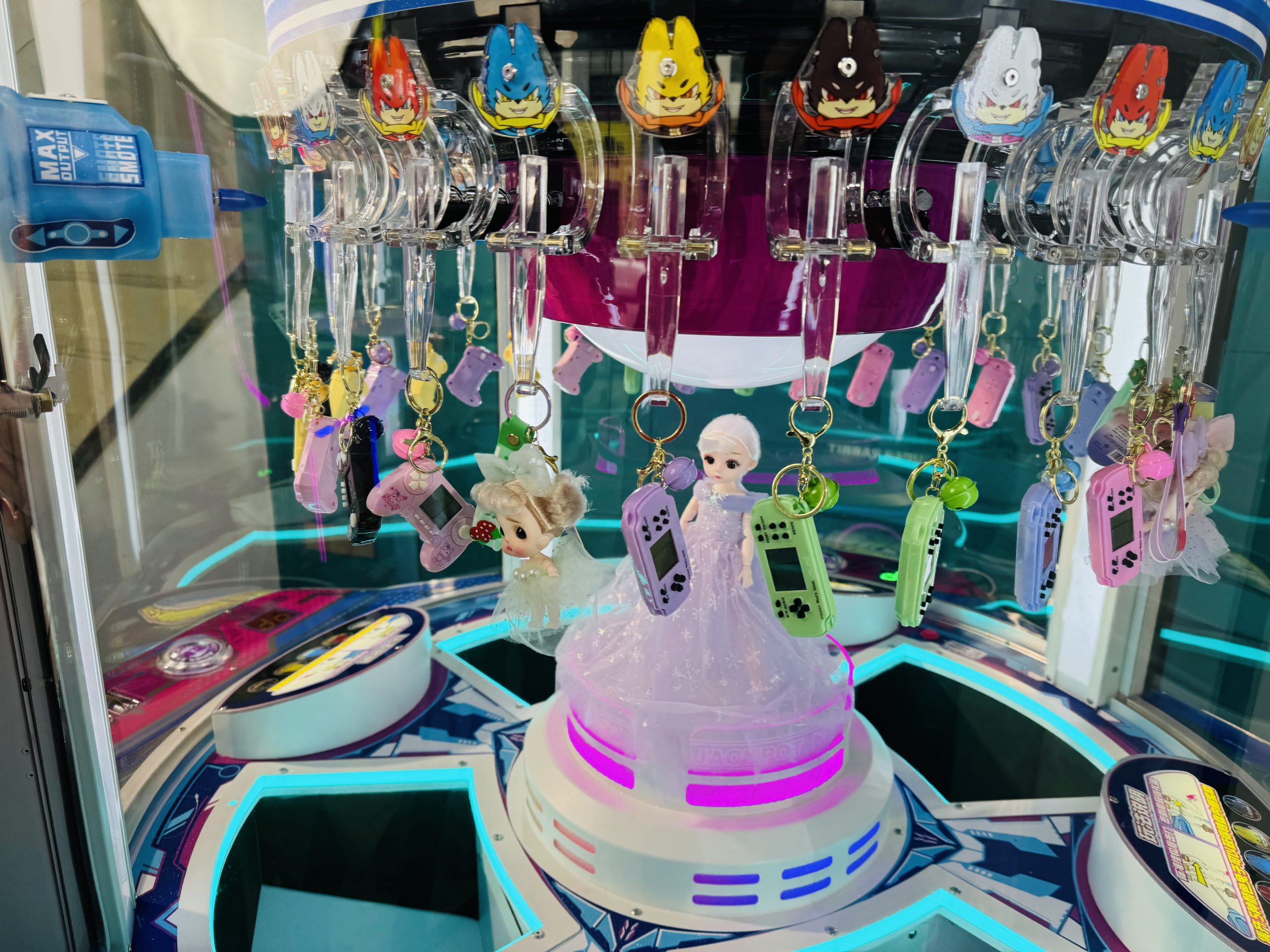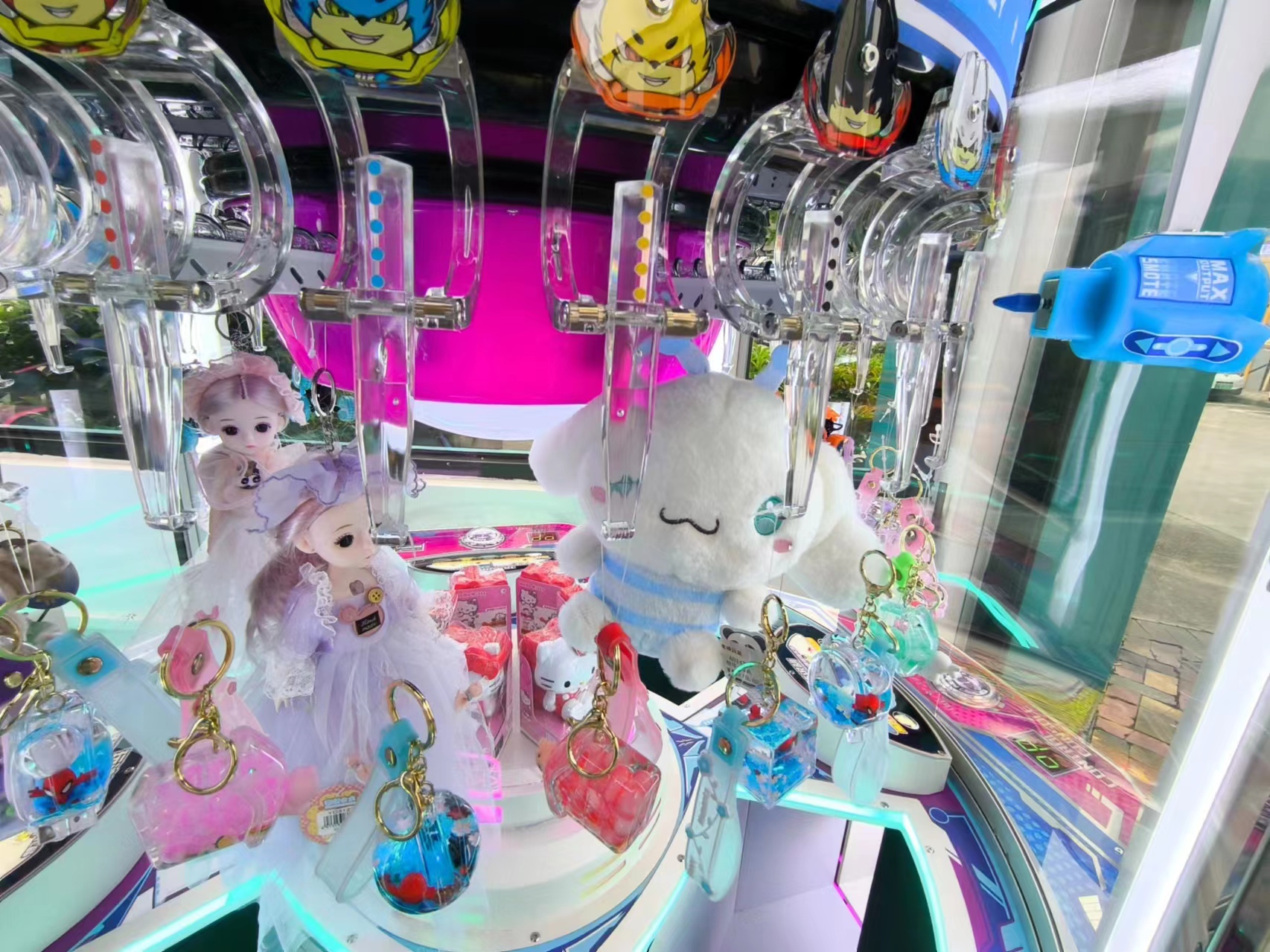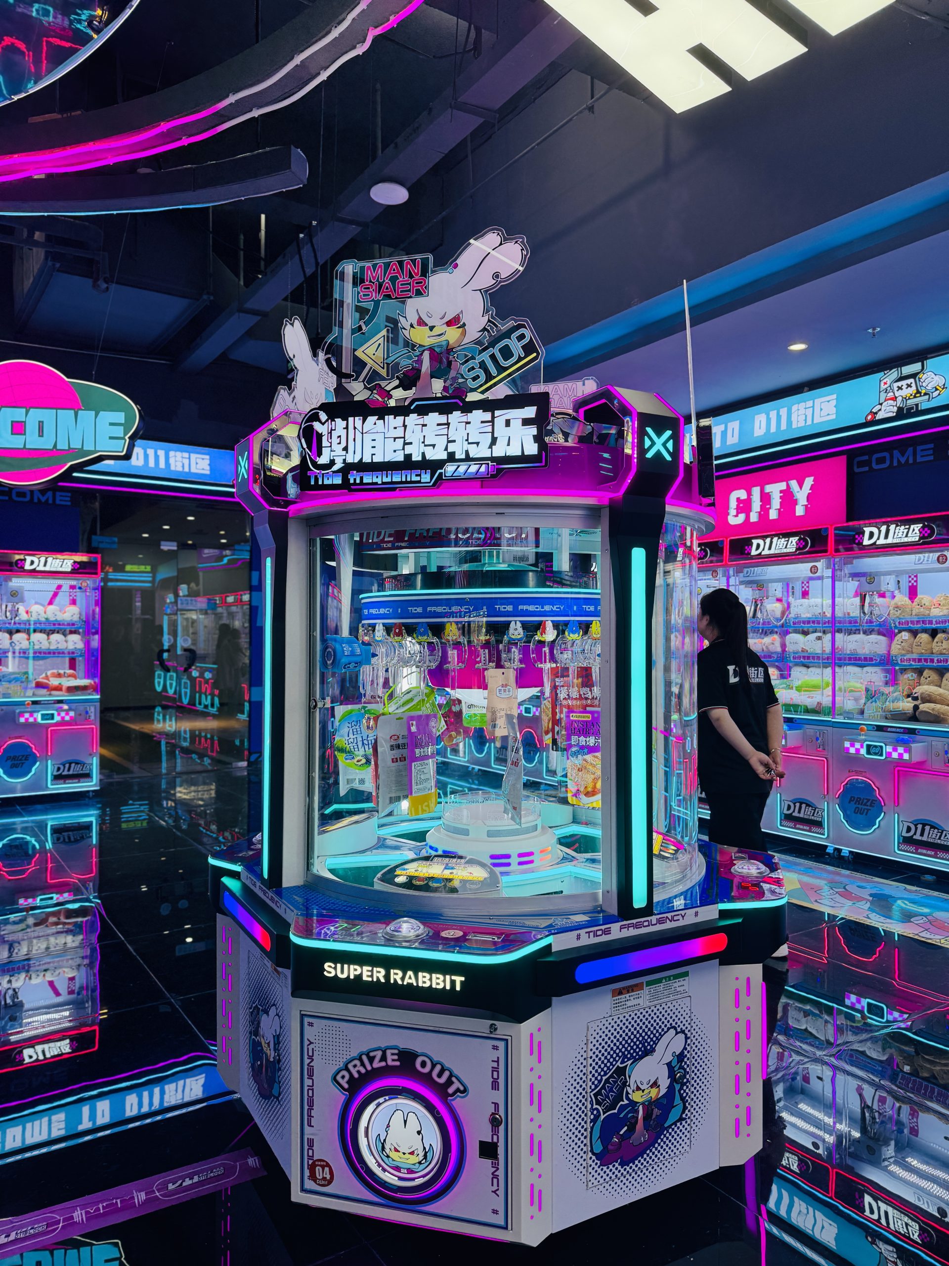 A four-player gift machine. When players press the start button, they can draw an outer hook and receive a small gift. If they collect 5 cartoon lights, they can obtain an inner grand prize, which may include rewards such as snacks, keychains, and toys. It has strong interactivity and a fast return-on-investment cycle.