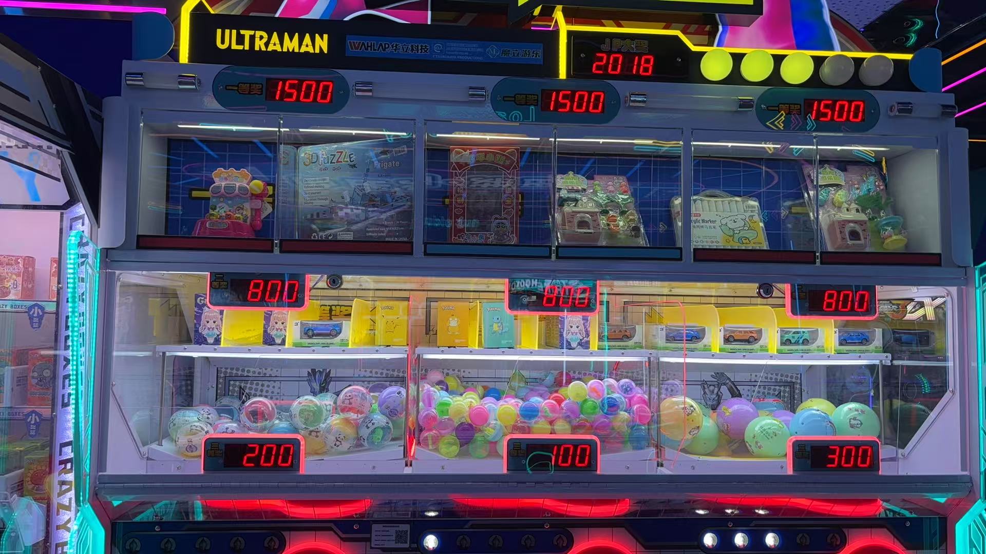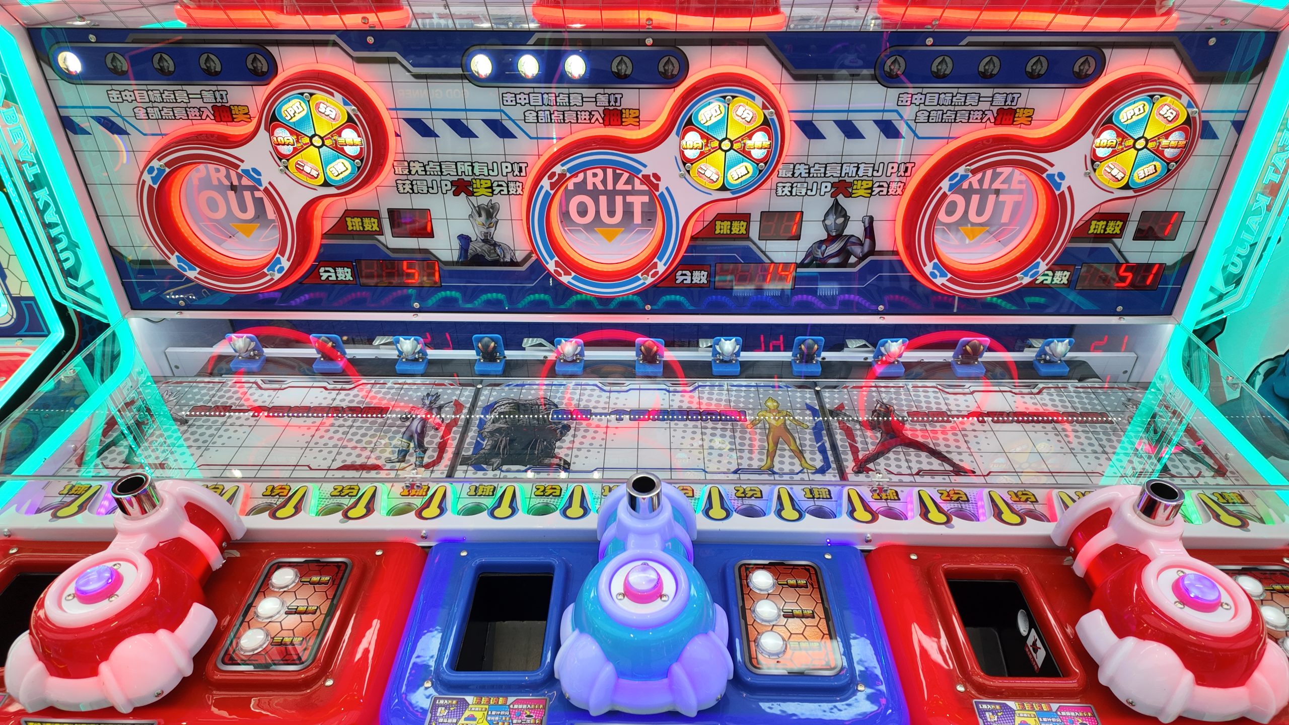 3-person gift machine. Players press buttons to launch small balls to earn points. These points can be used to exchange for exquisite gifts