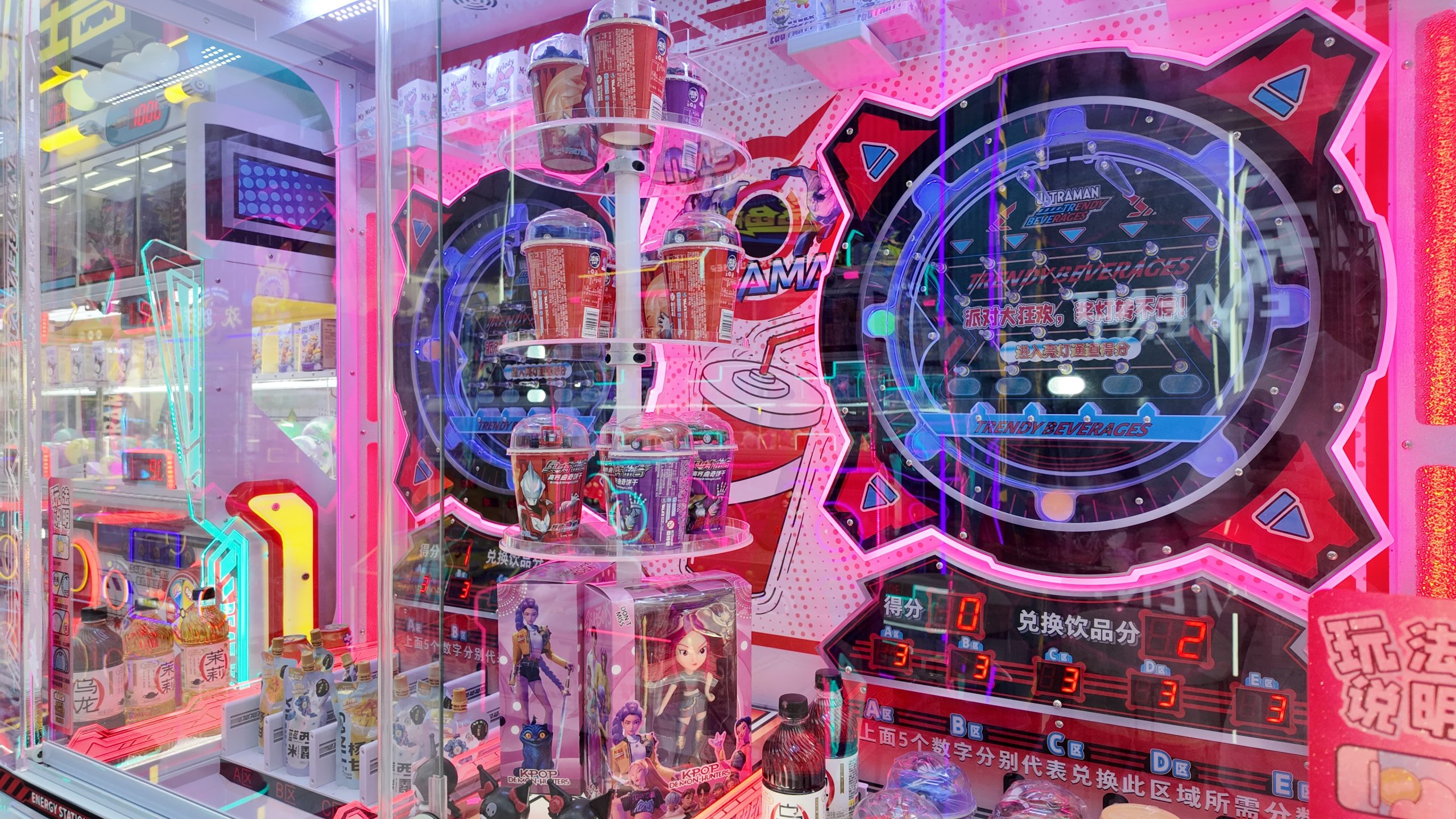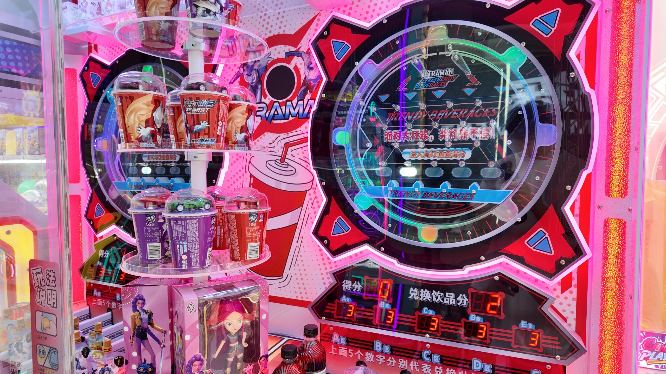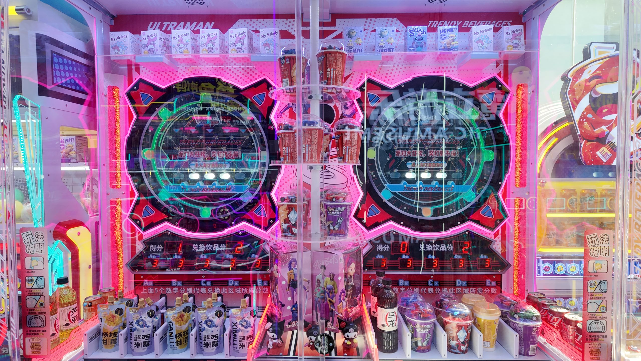Two beverage dispensers. In the game, once certain goals, scores or specific tasks are achieved, the beverage dispensers will provide the players with corresponding beverages as rewards or feedback.